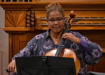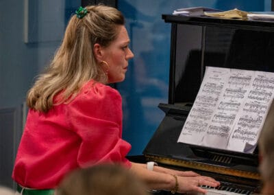 Terwijl het stadhuisorgel zich bijzonder goed leent voor muziek uit de barok of uit eigen tijd, hadden de musici rond de piano een programma samengesteld met romantische muziek. Vooral veel Brahms, maar ook Fauré en Ravel. Een heel ander soort muziek, en kennelijk trekt dat ook een ander publiek. Naast trouwe bezoekers zagen we deze keer ook nieuwe gezichten – waarvan we natuurlijk hopen dat ze ook terug zullen komen, nu ze de weg naar de Brusselzaal eenmaal gevonden hebben.