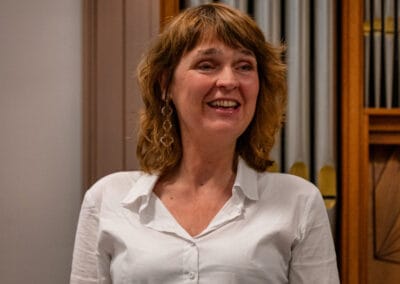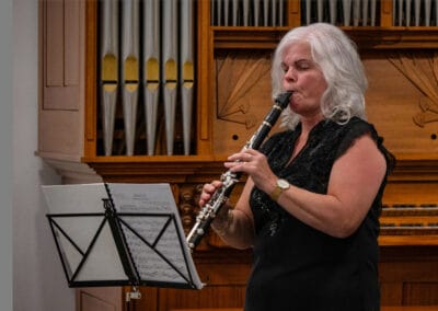 Maar de Stichting Stadsmuziek Rijssen, die de concerten nu organiseert, heeft sinds enkele jaren ook een piano! En die piano wil natuurlijk ook gehoord en gezien worden. Zo was er nu een concert waarin het orgel zweeg, terwijl pianiste Corien Baan juist haar handen vol had aan het begeleiden van alt-mezzo Fenny van Hemmen, klarinettiste Anne Marie Paauwe en celliste Anne Knappstein.