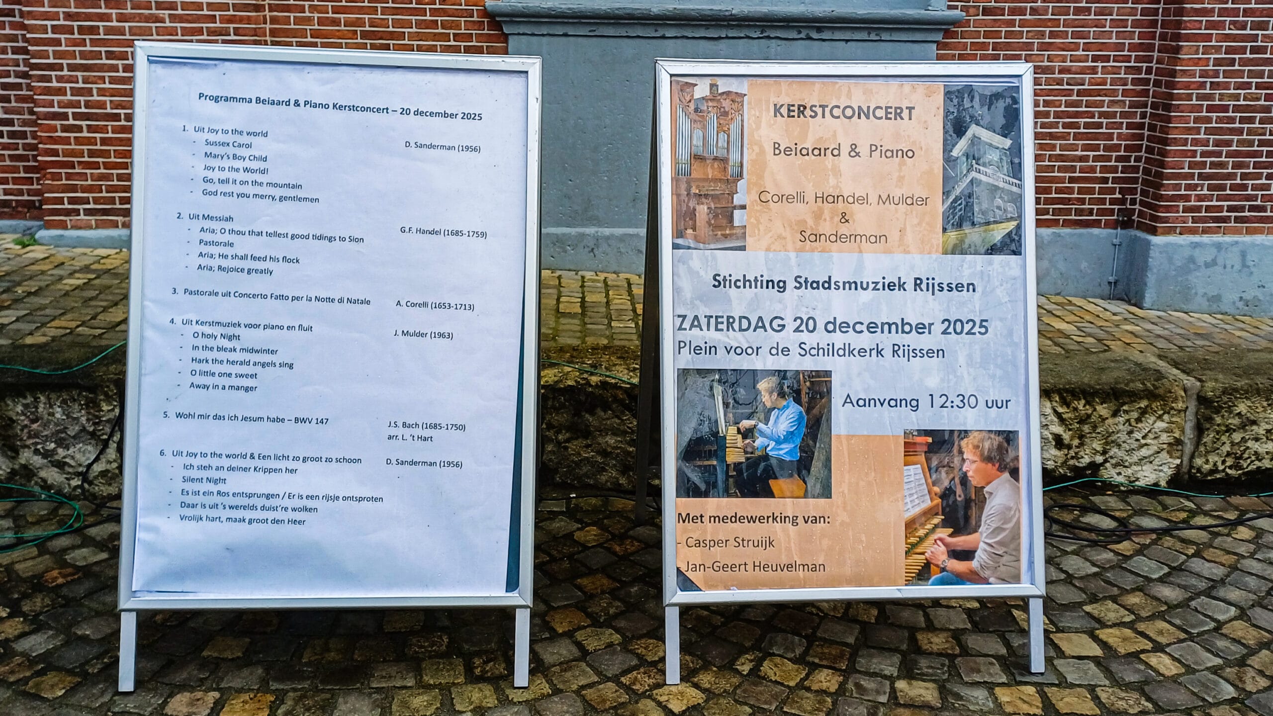Een beiaard-plus-concert in het teken van Kerst: Jan-Geert Heuvelman en Casper Struijk speelden kerstmuziek van Bach, Händel, Corelli, Mulder en Sanderman op piano en carillon. De mist zorgde voor een extra mystieke (mistieke?) sfeer.