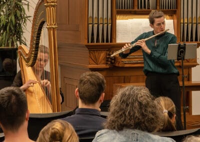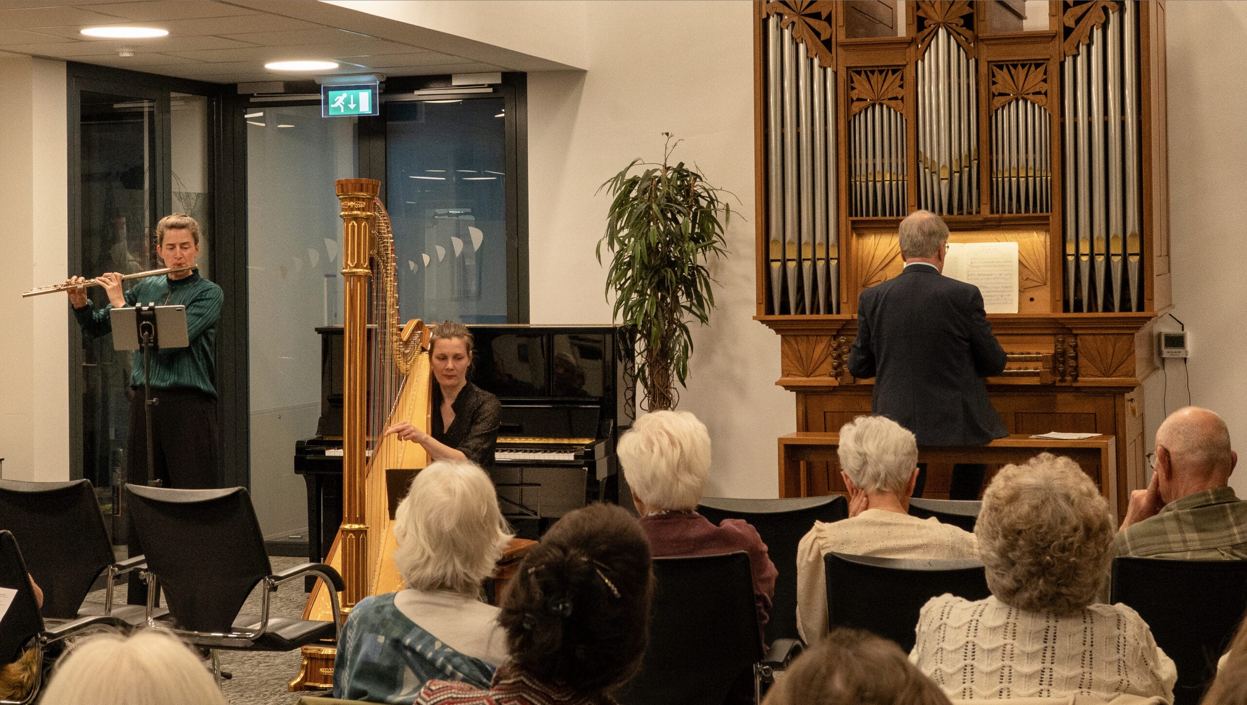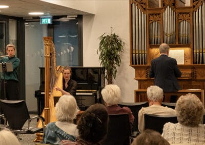 De concertserie werd in 1977 opgezet na de komst van het stadhuisorgel en viert volgend jaar dus het 50-jarig jubileum. Ook in dit concert kwam het orgel tot klinken. Als eerbetoon aan de Engelse componist Andrew Carter, die op 5 januari van dit jaar overleed, speelde Sanderman twee orgelwerken van Carter. Veel waardering oogstte de Partita van Johann Wilhelm Hertel, waarin fluit, harp en orgel gezamenlijk te horen waren. Duo PUUR besloot het concert met het bekende “You raise me up” van Rolf Lovland.